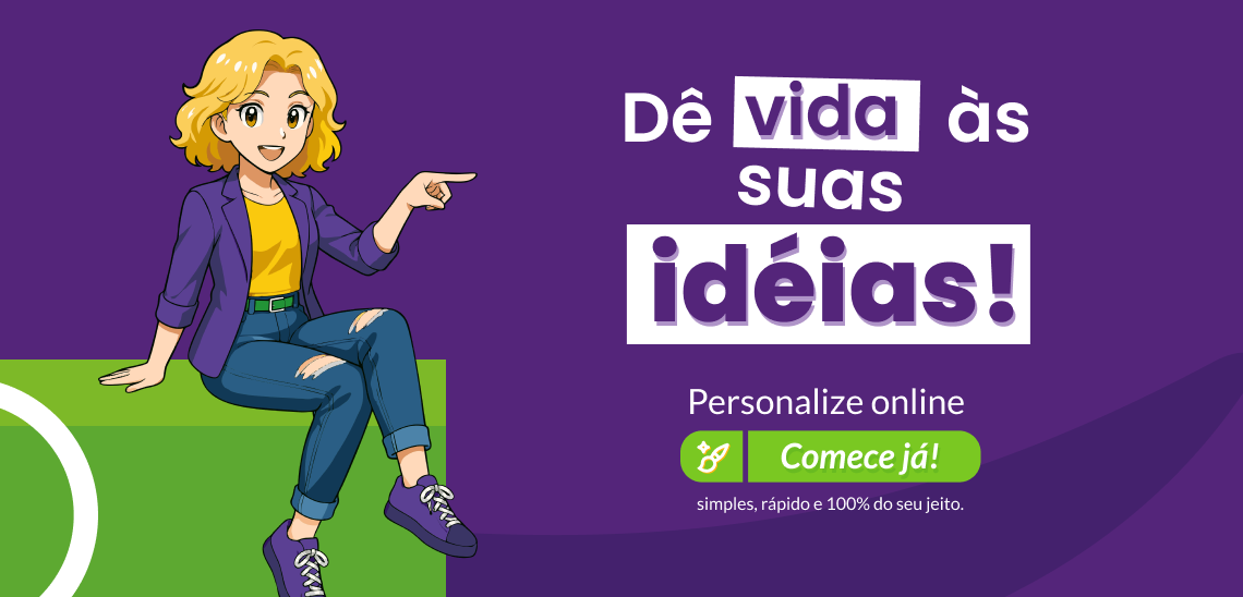 Basta escolher o produto, personalizá-lo usando nossa ferramenta online e adicionar ao carrinho. Depois, é só finalizar a compra informando os dados de entrega e pagamento.